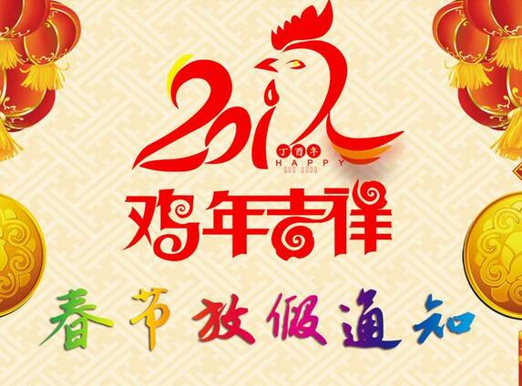 致全體東信公司全體家人們:放假時間:2017年1月26日-2017年2月4日,共10天,2月5日(正月初九)開始正常上班。
