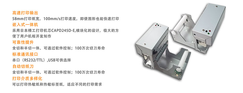 主要性能:58mm寬打印,100mm/s打印速度,打印壽命長達100km